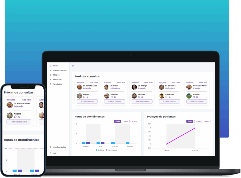 Uma solução completa para gestão de clínicas e profissionais da saúde contribuindo com todo o processo de atendimento ao paciente.